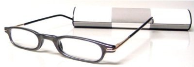 This high end reader has integrated spring hinges, durable acetate frame and optical quality, scratch resistant lenses. The frame is two toned with the main metallic grey color on the exterior of the frame with a black interior. The nose pads are built in, so there's nothing to snag in your hair when you wear these 'up top'. The protective hard case is truly magic as it rolls onto itself to close, both ways??hard to describe, but you will be playing with this for hours and your friends will want to too.....it's very cool. You'll want these just for the case, but the readers are stylish, high quality and look great too.