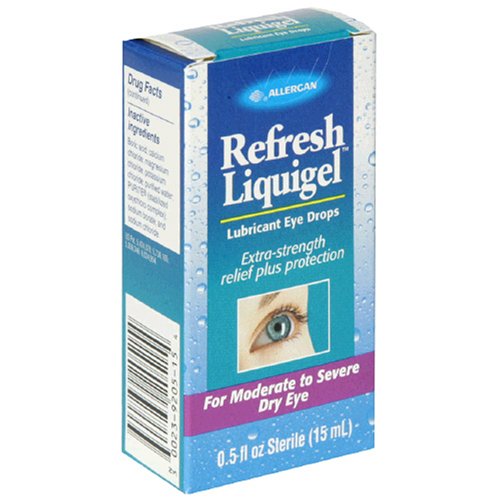 Sterile. Extra-strength relief plus protection. Refresh Brand is the number 1 doctor recommended. (Verispan's Physician Drug & Diagnosis Audit (PDDA) February 2000 - January 2005.) Refresh Liquigel Lubricant Eye Drops is a unique, extra-strength eye drop, specially formulated to provide added moisture for immediate relief of moderate-to-severe dry eye. Because Refresh Liquigel works like your own natural tears, it is safe to use as often as needed. What Can Cause Dry Eye? Heating and air conditioning; Computer use and reading; Wind and sun; Certain medications; Age and certain medical conditions.